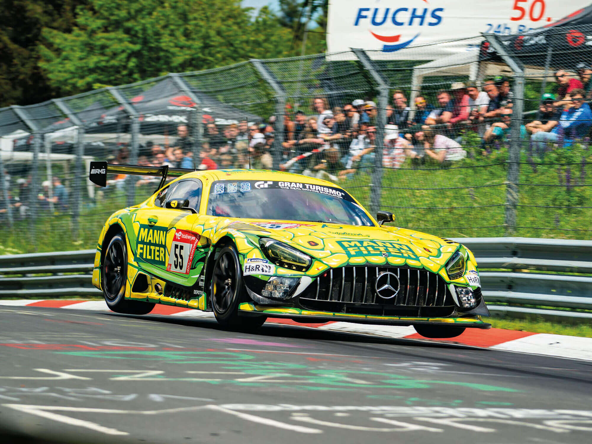 Ludwigsburg, 01. Juni 2022 – Beim 50. Jubiläum des 24-Stunden-Rennens auf dem Nürburgring war es für MANN-FILTER eine Ehre, mit der allseits beliebten Mercedes Mamba das Comeback auf der Nordschleife zu feiern. Vor einer Kulisse von über 230.000 Zuschauern, die aus allen Ländern in die Eifel gepilgert waren, startete MANN-FILTER zusammen mit dem bewährten Partner Landgraf Motorsport und einem professionellen Fahreraufgebot bestehend aus den beiden Nordschleifen-Profis Dominik Baumann (29, Österreich) und Patrick Assenheimer (30, Deutschland), sowie dem Juniorenduo Julien Apothéloz (21, Schweiz) und Luca-Sandro Trefz (20, Deutschland).